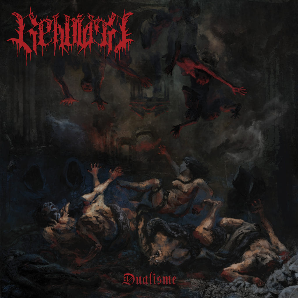 The caustic guitars by Pier-Luc and Alex darken the skies before their bandmates come ripping in Le vassal de la profanation, a visceral Black Metal attack where the vocals by Dan will haunt your putrid soul for all eternity, followed by the title-track Dualisme, living up to the legacy of Métal Noir Québécois, sounding caustic from start to finish while Michel’s beats alternate between sheer savagery and more cadenced, somber moments; and Michel hammers his drums in a nice Motörhead-style in Vers le pandæmonium while the music evolves into a sinister form of Black Metal led by the once again sick riffage by Pier-Luc and Alex. After such disturbing sonority, it’s then time for Kéven to smash his bass and kick off the even darker Géomancie, where their blast beats walk hand in hand with their wicked, malignant riffs, resulting in a full-bodied aria of extreme music